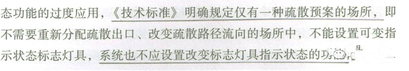 2018年4月10日原公安部消防局印发了《关于印发〈建筑高度大于250米民用建筑防火设计加强性技术要求(试行)〉的通知》,在《通知》的第二十七条明确:“建筑内不应采用可变换方向的疏散指示标志”,在《通知》的条文说明中对该款规定的制定做出了如下解释:“鉴于可变换指示方向的疏散指示标志在我国工程实践中尚存在一定的问题,因此规定超高层建筑内不应采用此类疏散指示标志”。